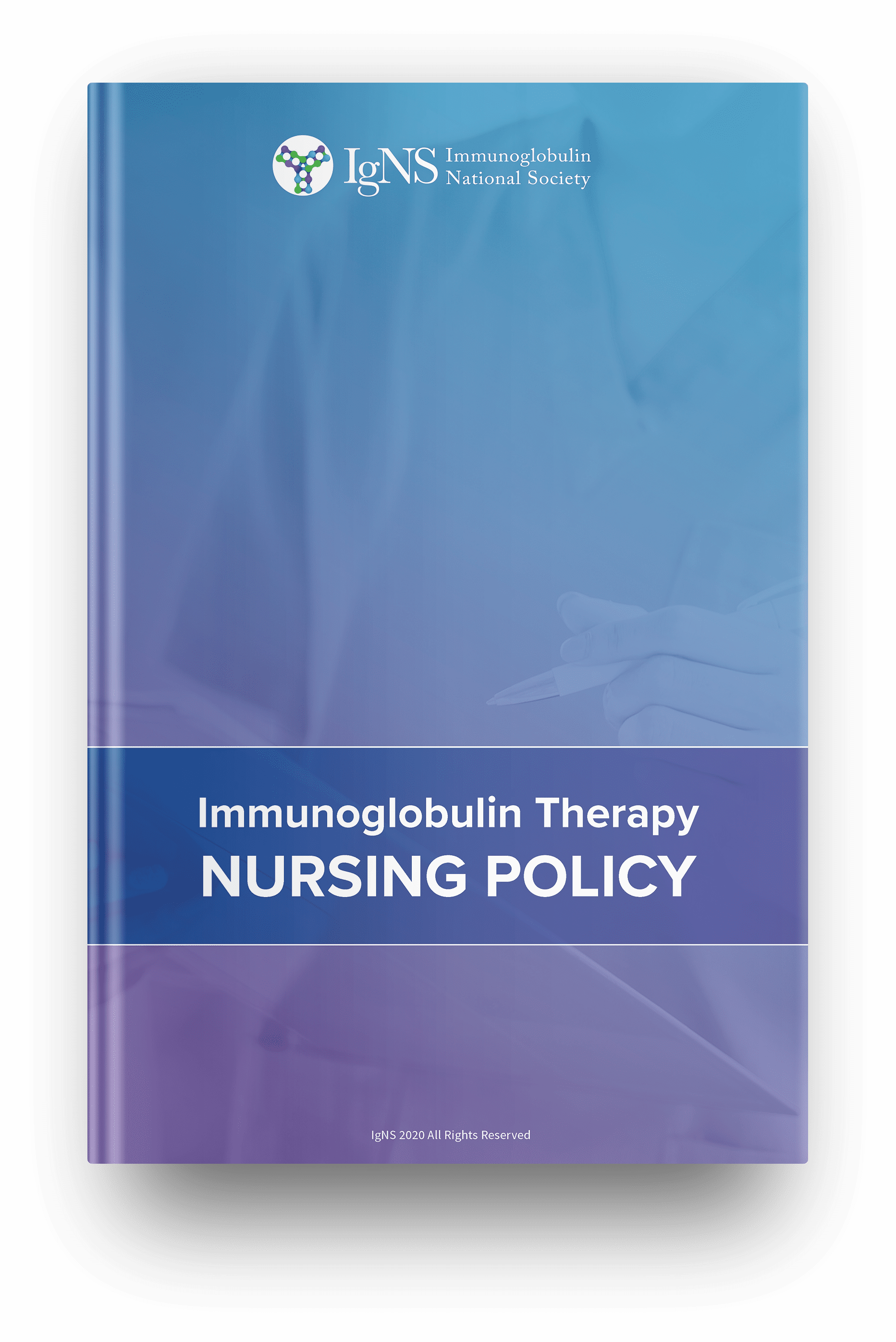 The IgNS Ig Nursing Policy, is your updated guide to Ig nursing practice, and is an integral part of organizational policies. This policy guides and addresses key points in pre-infusion assessment, management of patients in a variety of clinical settings during the infusion, as well as post-infusion follow-up.